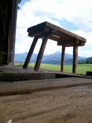 "STOOLING" Steve McQueen apparently sat on a stool smoking a cigarette while he was waiting for the 'jump' scene to be set up. The stool is hidden away in a hut just a few metres away from the field and it belongs to the farmer who owns the field. He is called Josef Kern (aka 'Seppy'). If you find the farmer tell him that you have come to sit on the 'stool'........he will be expecting you. Laughter and joy was had by all as photographs were taken of the stool in many positions and angles.... |